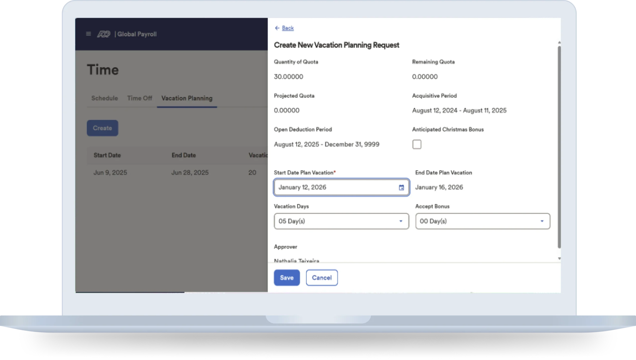 The redesigned module delivers a more intuitive and accessible vacation planning experience for employees and managers. Improved workflows reduce effort and errors, while OneUX alignment ensures consistency across ADP products—supporting better decision-making and a modern, user-centric payroll experience.