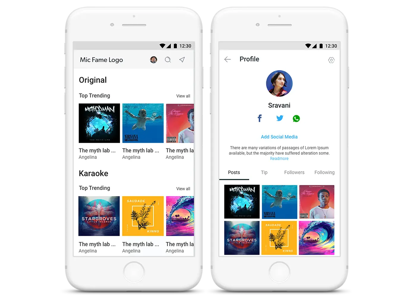 Micfame is a music app with two special features Karaoke and Original content. In Karaoke user will be able to sing on all top hit songs from all over the world. In original section you will find songs by individual artists which are not available on any other platform.