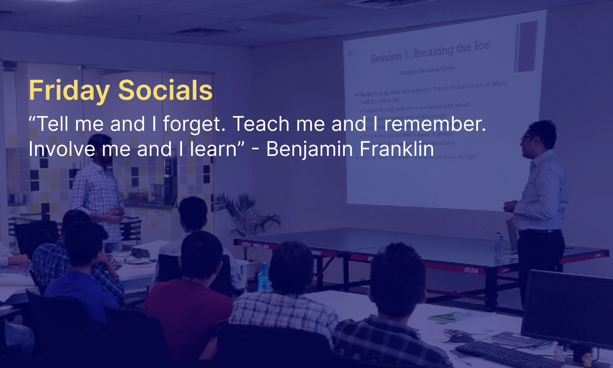 BFS has emerged by an idea of educating workmates around us both into technology and non-technology aspects of life. Whether is it about the new technology in the industry or about strategies to efficiently work from home. This comprises of everything which helps in growth of any individual. It started with a small group of 4 organizers which over periods increased by 10. Initially it took 2-3 weeks’ time to ramp up the whole program, but eventually we could see the numbers of participants growing. The charm which we see on Friday clamming to be the last working day of the week, so this was one of the reasons which made this more special.