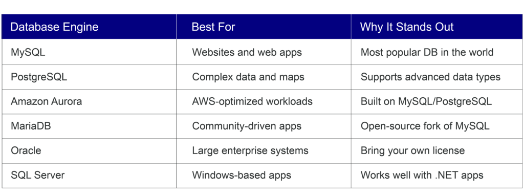 Amazon RDS removes the hassle of managing databases. It supports the most popular engines, keeps your data safe, scales with your app, and handles backups automatically. Whether you are building a side project or a production application, RDS is a reliable choice for your data layer on AWS.